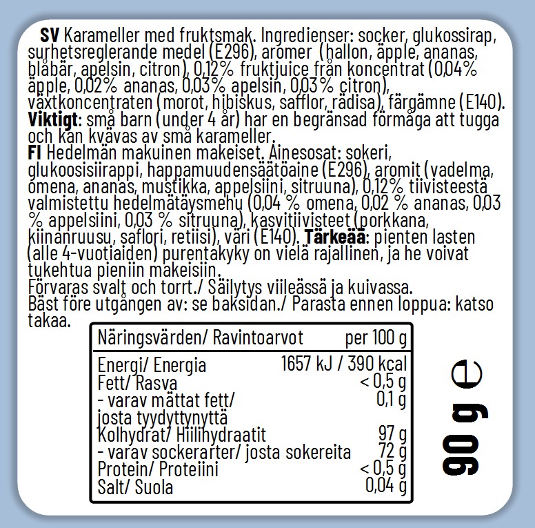 Päivitämme tuotetietoja jatkuvasti. Suosittelemme aina kuitenkin tarkistamaan tiedot pakkauksesta.