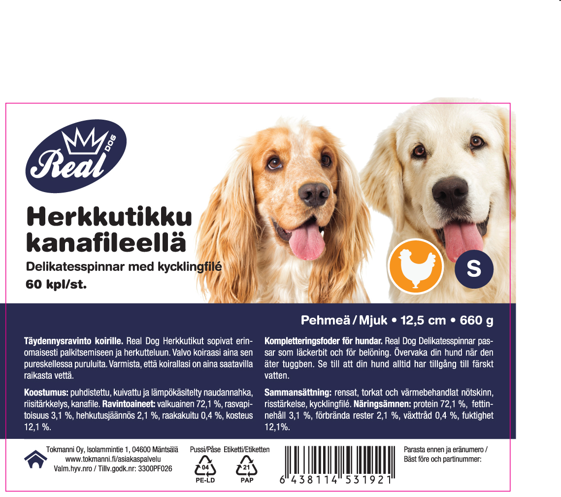 Herkullisen purutikun päällä on rapeaksi paistettua kanafileetä. Tämä herkku maistuu nirsollekin koiralle! Purutikussa on pehmeä puruvastus. S-kokoisen purutikun pituus on 12,5 cm, ja se sopii pienikokoisille koirille.