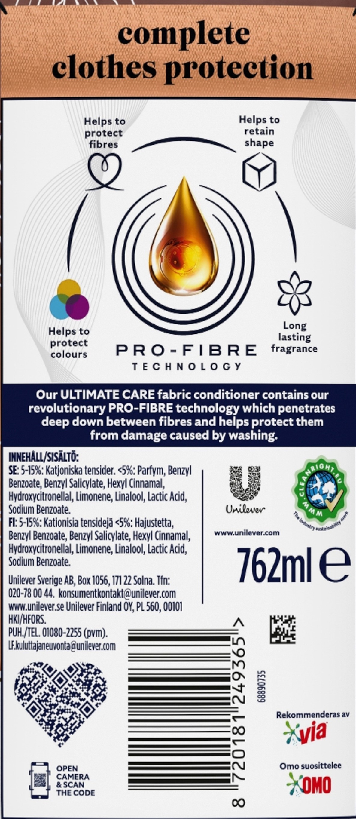 Suositun Comfort-huuhteluaineen uusi, parannettu koostumuksen ansiosta voit nauttia pidempään kestävästä raikkaudesta. Huuhteluaine on tiiviste, mikä pienentää pakkausta ja annostusta. Pakkaus on valmistettu 100 % kierrätetystä muovista ja se on 100 % kierrätettävä. Tuotteen pinta-aktiiviset aineet ovat 100 % biohajoavia.