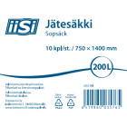 Iisi Jätesäkki monenlaiseen käyttötarkoitukseen. Materiaali LDPE kierrätysmuovi. Jätesäkin koko on 750 x 1400 mm, paksuus paksuus 0,03 mm. Vetoisuus on 200 litraa. Pakkauskoko 10 kpl. Väri musta.
