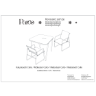 Kätevään Parco Celio -kalustesettiin kuuluu kaksi tuolia ja pöytä. Kalusteissa on kestävä metallirunko. Tuolien istuinosa ja selkänoja ovat UV-suojattua Textilene-kangasta. Pöytälevy on karkaistua 5 mm lasia.