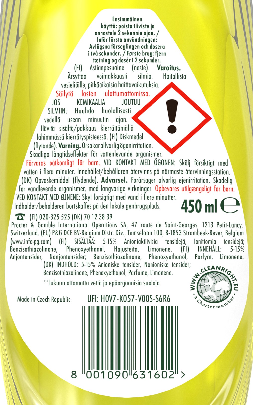 Käsitiskiaine Fairy 450 ml Max Power Lemon