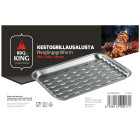 Ruostumattomasta teräksestä tehty BBQ King -kestogrillausalusta helpottaa ruokien siirtelyä grilliin ja sieltä pois sekä vähentää grillin paistopinnoille päätyvän rasvan tai marinadin määrää. Näin grillin puhdistaminenkin käy helpommin. Koko 345 x 243 mm.
