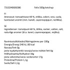 Felix-ketsupin herkullinen maku syntyy makeista auringossa kypsyneistä tomaateista ilman säilöntäaineita. Felix-ketsuppi on ollut suomalaisten suosiossa jo vuosikymmeniä. Pakkauskoko 500 g.