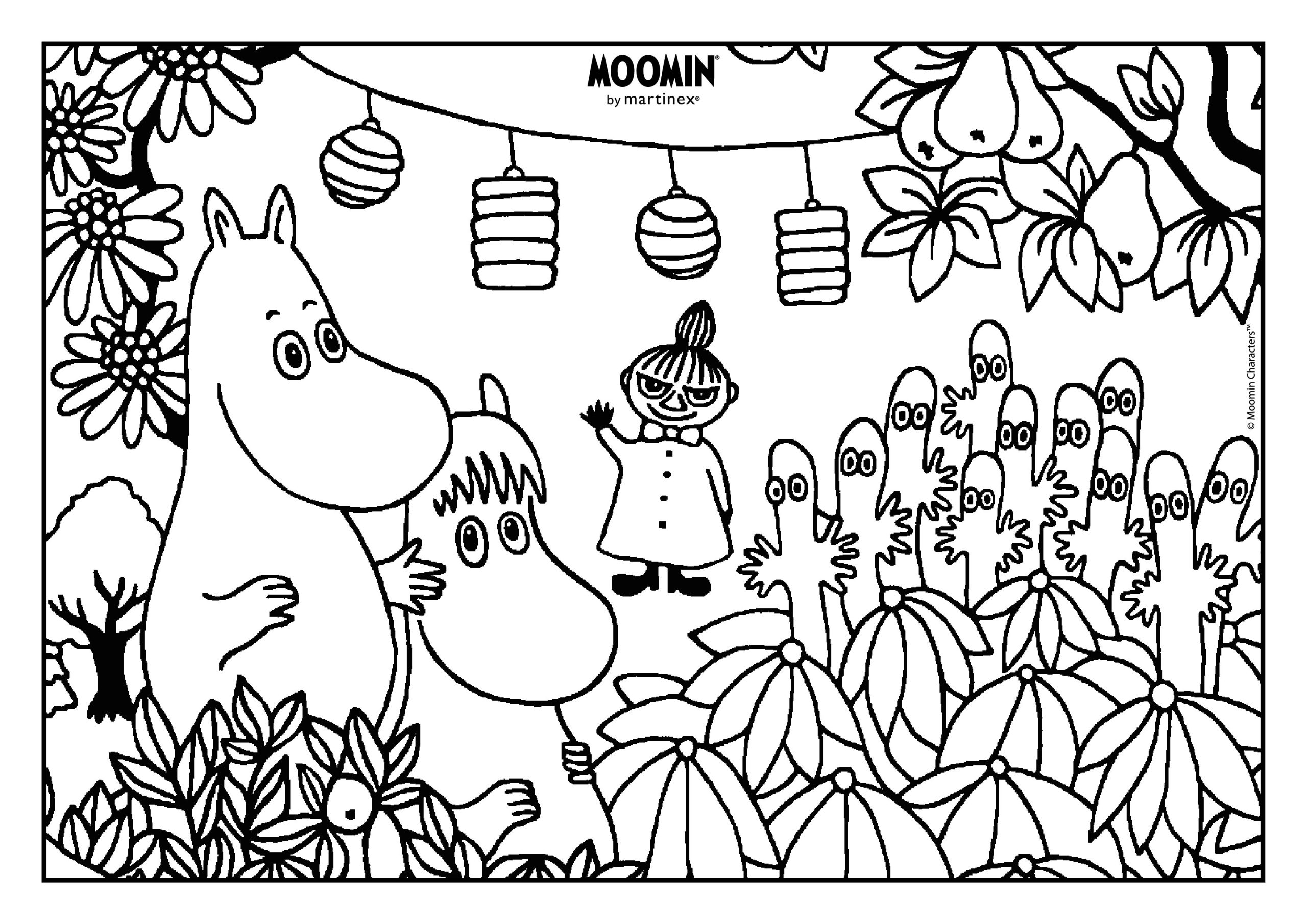 Halutessa voit ladata sivuilta Muumi-aiheisia värityskuvia.