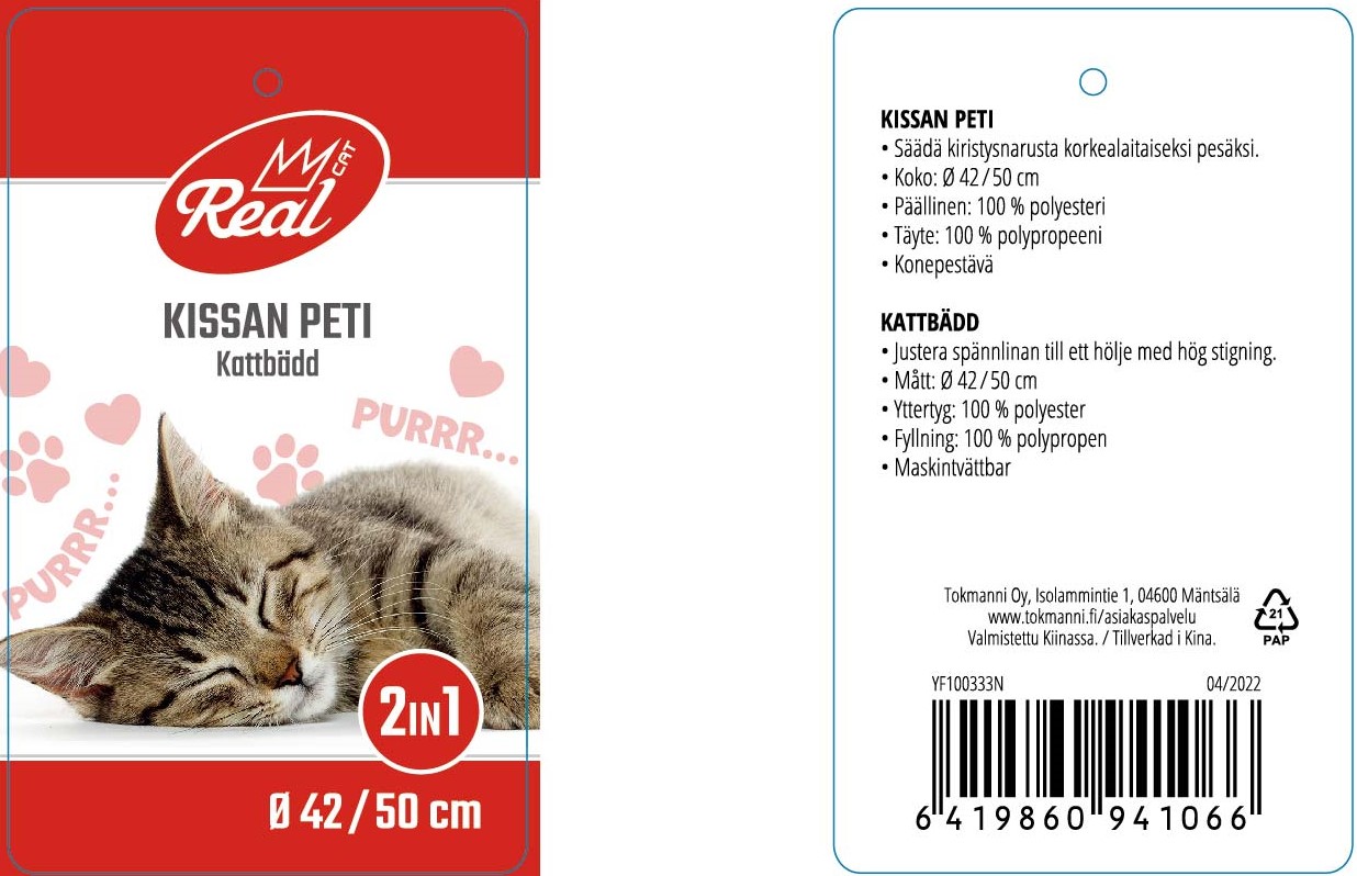 Ihanan pehmeä ja monikäyttöinen kissanpeti toimii kahdella tavalla: perinteisenä tyynynä ja nyörillä kiristettävänä korkealaitaisena pesänä. Kiristysnarussa on stoppari, jonka avulla pesän kokoa voi helposti säätää. Kissanpeti on molemmilta puolilta pehmeää ja pörröistä karvaa.