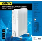 Öljytäytteinen Energy+ -lämmitin sopii lisälämmittimeksi tilapäiseen käyttöön kuivissa sisätiloissa. Valittavissa on kolme eri lämmitystehoa: 800 W / 1200 W / 2000 W. Lämmittimessä on termostaatti ja turvallisuutta lisäävä ylikuumenemissuoja. Lämmitintä on helppo siirrellä pyörien avulla.