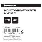 Kokoontaittuva monitoimimattoveitsi Pro Kraft on monikäyttöinen työväline sekä ammattilaiselle että harrastajalle. Materiaali painevalettua sinkkiseosta. Innovatiivinen patentoitu muotoilu. Mukana 5 kpl erittäin terävää ja kestävää terää. Väri hopea / musta / keltainen.