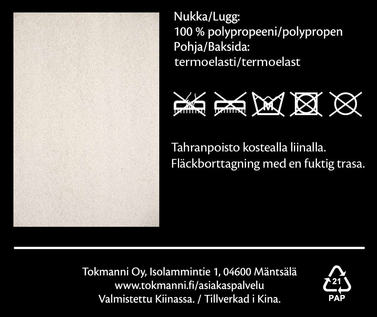 Kotikulta Siena -nukkamatto sopii monipuolisesti sisustamaan erilaisia tiloja. Yksivärinen matto on ajaton valinta ja helppo yhdistää osaksi muuta sisustusta. Matossa on liukuestepohja, joka pitää maton tukevasti paikallaan.