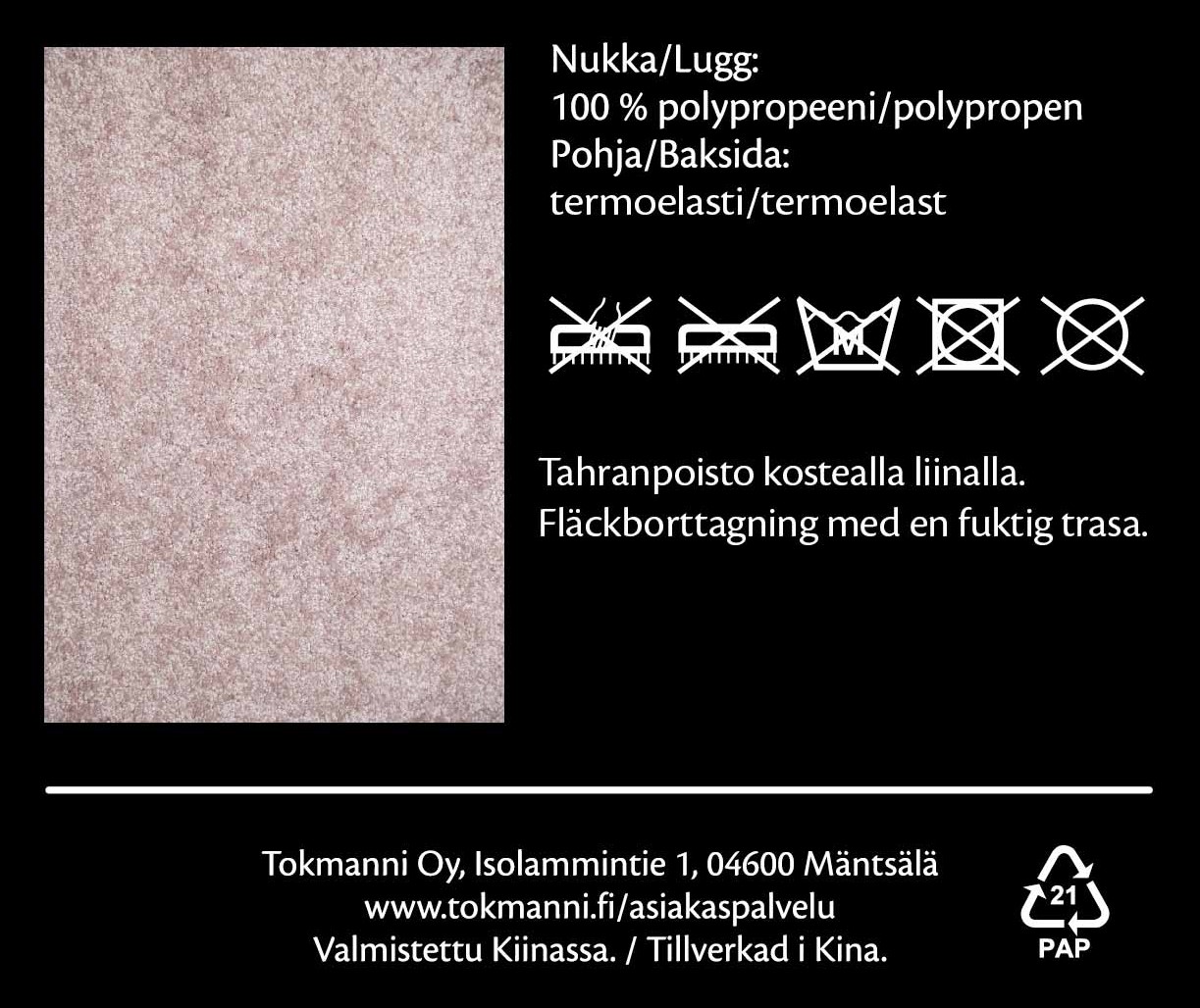 Kotikulta Siena -nukkamatto sopii monipuolisesti sisustamaan erilaisia tiloja. Yksivärinen matto on ajaton valinta ja helppo yhdistää osaksi muuta sisustusta. Matossa on liukuestepohja, joka pitää maton tukevasti paikallaan.