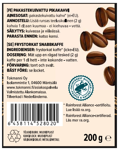 Pakkauksesta riittää noin 100 kuppia. Pakkauskoko 200 g.