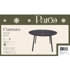 Parco Cosenza -pöydän runko on alumiinia, jalat terästä ja kansi UV-suojattua polywoodia. Mitat (Ø x k): 115 x 74 cm. Kantavuus 50 kg.