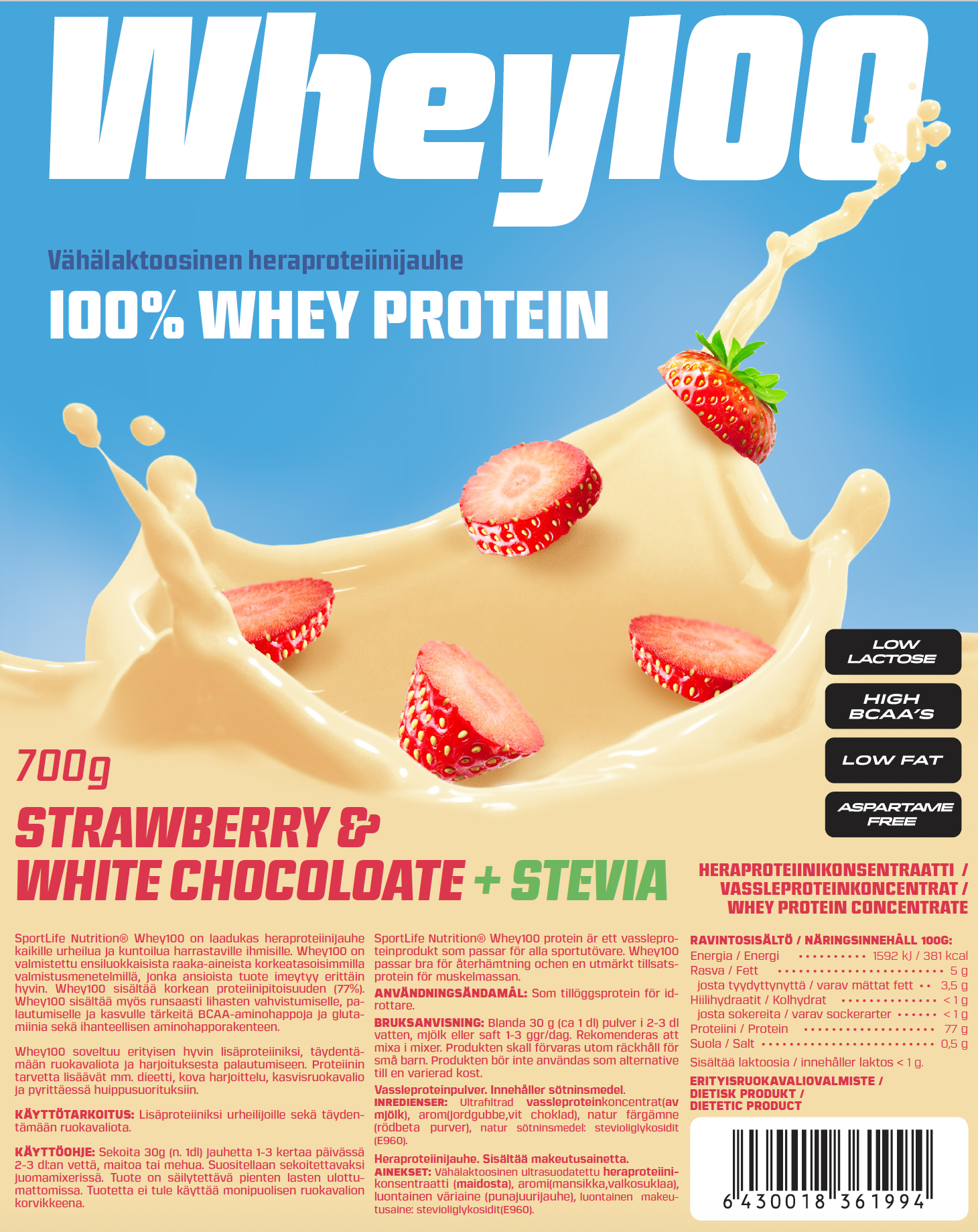 Whey100 on edullinen ja laadukas heraproteiinijauhe kaikille urheilua ja kuntoilua harrastaville. Se on valmistettu ensiluokkaisista raaka-aineista korkeatasoisimmilla valmistusmenetelmillä. Tämän ansiosta Whey100 imeytyy erittäin hyvin.
