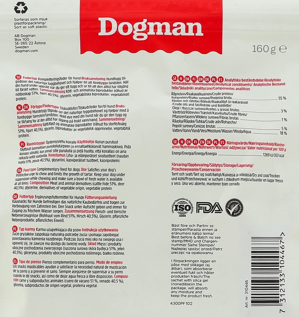 Puristettu Dogman-pururengas herkullisella peuranlihalla. Pururengas sopii nirsoille ja herkkävatsaisille koirille. Se tarjoaa pitkäkestoista pureskeltavaa, täyttäen koiran pureskeluntarpeen ja edistäen suunterveyttä.