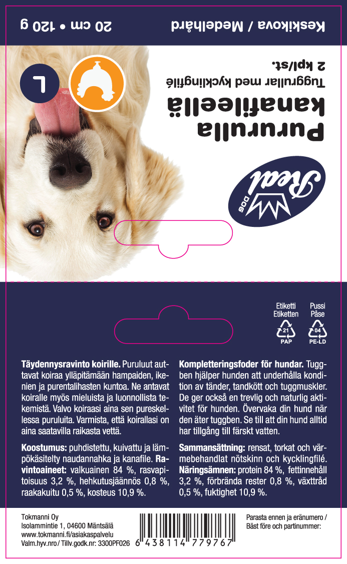 Klassiset naudannahkaiset pururullat on kääritty rapealla, vastustamattoman herkullisella kanafileellä. Näitä koirasi ei voi vastustaa! Samalla kun koirasi nauttii herkkuhetkestä, se myös huoltaa hampaidensa terveyttä. Puruluiden pureskelu auttaa ylläpitämään hampaiden, ikenien ja purentalihasten kuntoa.