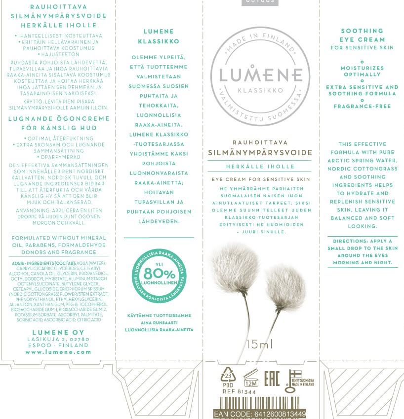Silmänympärysvoide Lumene KLASSIKKO 15 ml rauhoittava herkälle iholle
