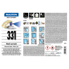 Helppokäyttöinen ja nopeasti kuivuva Maston-spraylakka soveltuu tarkkaan ja siistiin lakkaamiseen sisällä ja ulkona. Ainutlaatuisen, patentoidun suuttimen ansiosta lopputuloksesta tulee tasainen ja peittävä – jälki on yhtä hyvää kuin ruiskumaalauksessa mutta paljon pienemmällä vaivalla.