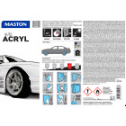 Maston AutoACRYL on laadukas akryylipohjainen spraymaali auton metalli- ja muovipinnoille sekä vanteille. Erinomaisesti peittävä maali on käytössä riittoisaa, ja se muodostaa kiiltävän, hyvin kulutusta kestävän pinnan. Maalipinta on erittäin kova ja suojaa tehokkaasti kiveniskuilta ja kulumiselta. Maston AutoACRYL -spraymaalilla tuunaat autosi helposti ja nopeasti ja suojaat sitä samalla tehokkaasti naarmuuntumiselta ja kulumiselta. Väri vannehopea sopii erityisesti vanteille ja antaa niille upean ilmeen.