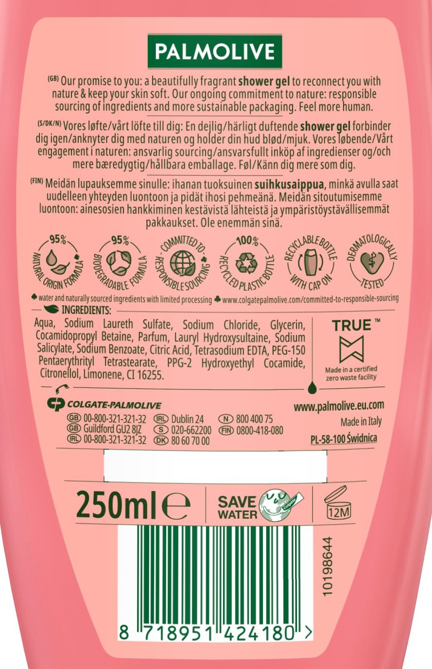 Palmolive Aroma Essence -suihkusaippuoiden hurmaavat tuoksut vievät sinut luontomuistojen pariin. Luonnon inspiroimat suihkusaippuat ovat sitoutuneet luonnon hyvinvointiin; ainesosat on hankittu kestävistä lähteistä ja pakkauksissa on huomioitu ympäristöystävällisyys. Koostumus on 95 % biohajoava.