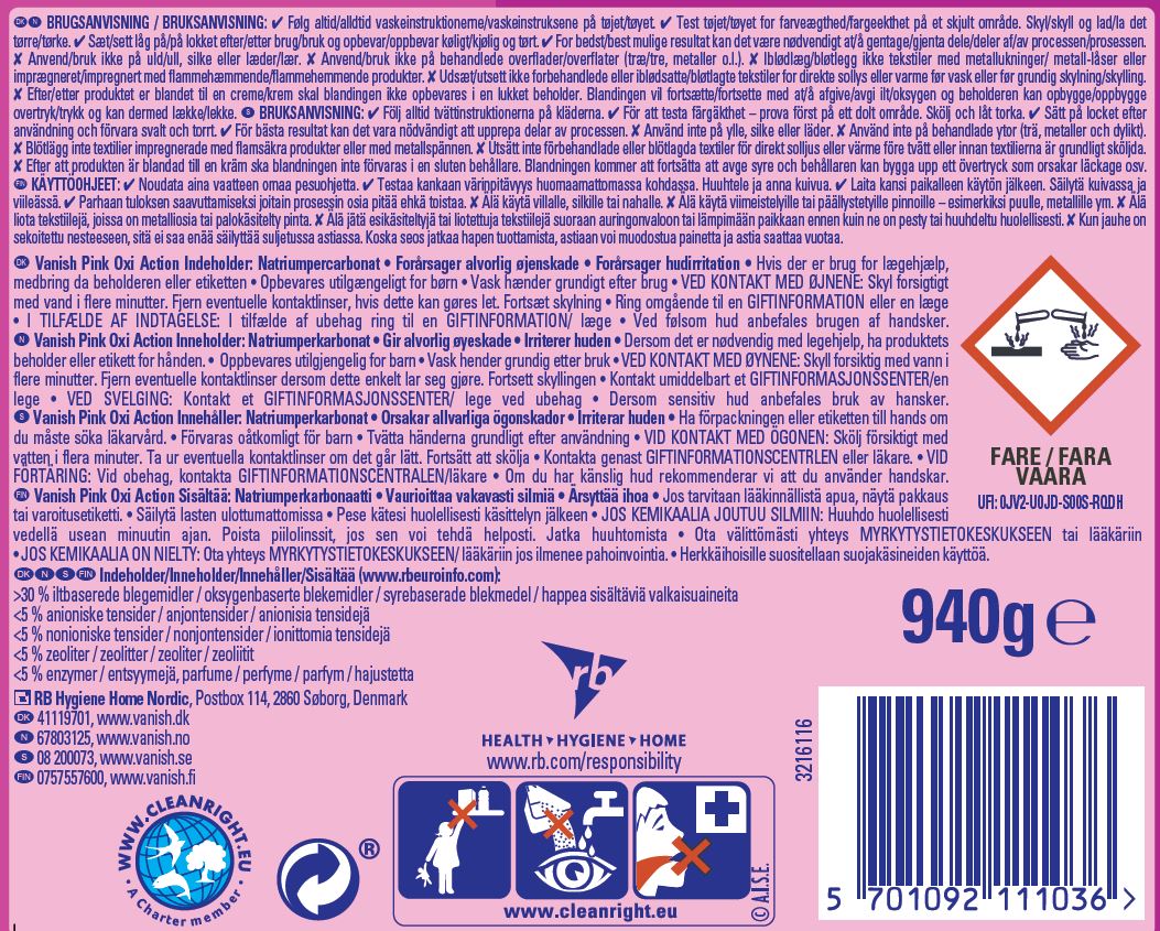 Hämmästyttävää tahranpoistotehoa jo heti ensimmäisellä käyttökerralla! Vanish Pink Gold Oxi Action -tahranpoistojauheella saat uskomattomat tahranpoistotulokset helposti ja nopeasti. Voit käyttää tahranpoistojauhetta turvallisesti sekä kirjo- että valkopyykille.