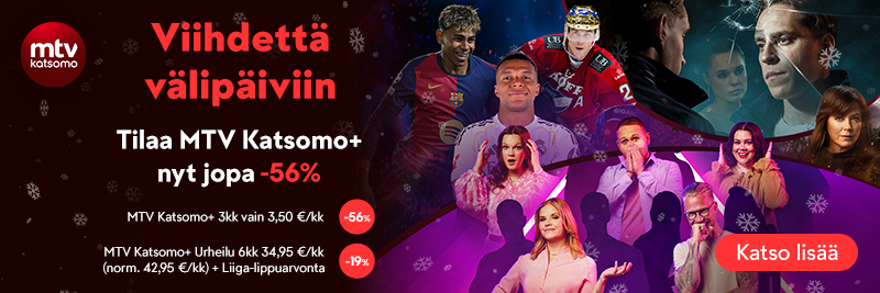1.MTV Katsomo+ 3 kk vain 3,50 €/kk (norm. 7,95)