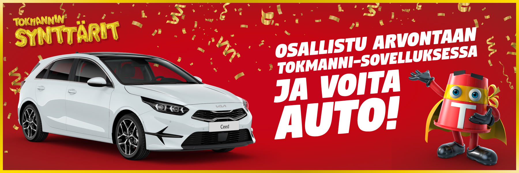Tokmannin synttärit ovat startanneet tuttuun tyyliin - kaasu pohjassa! Synttärijuhlinnan kunniaksi haluamme arpoa sovellusasiakkaidemme kesken yhden Kia Ceed 5D Mild-Hybrid LX automaatti –henkilöauton (arvo 30 850 €).