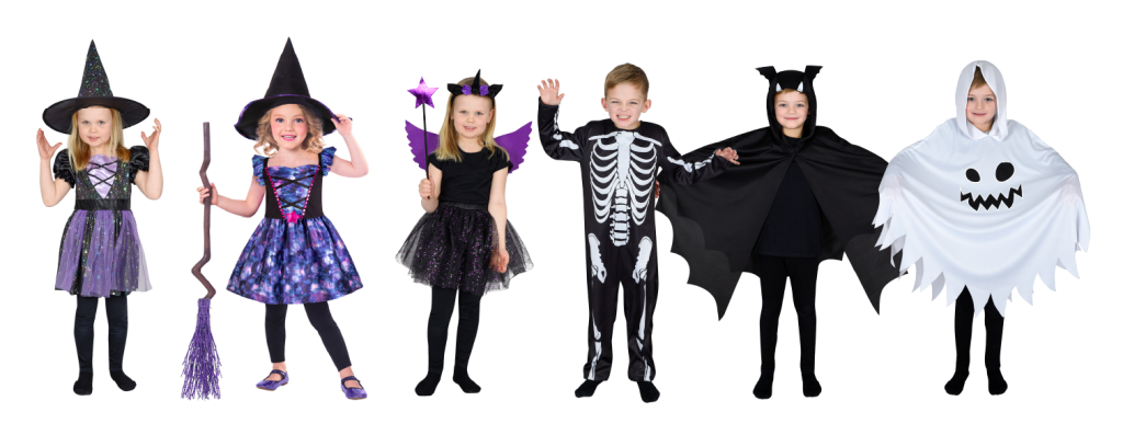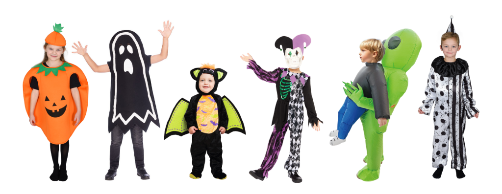 Lasten naamiaisasuista ehdottomasti söpöin on syötävän ihana kurpitsa-asu, johon voi yhdistää kannettavan kurpitsasangon, joka täytetään erilaisilla halloween-herkuilla. Naamiaisasuja löytyy myös pelottavan ja hauskan rajamailta, esimerkiksi pellejä pelkäämättömille sopii lasten klovni-asu.