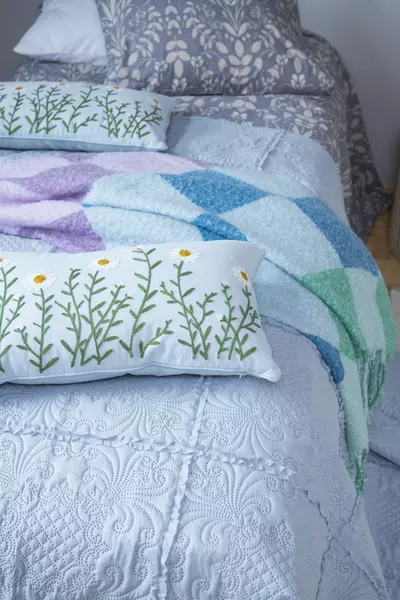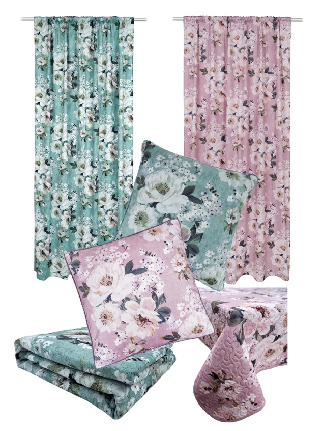 Sarjaan kuuluu verhoja, koristetyynyjä ja päiväpeitteitä, jotka muodostavat yhdessä upean, keväisen kokonaisuuden. Celia-tunnelma on yhtä aikaa näyttävä ja rauhallinen — kuin kevät kukkisi sisätiloissa.
