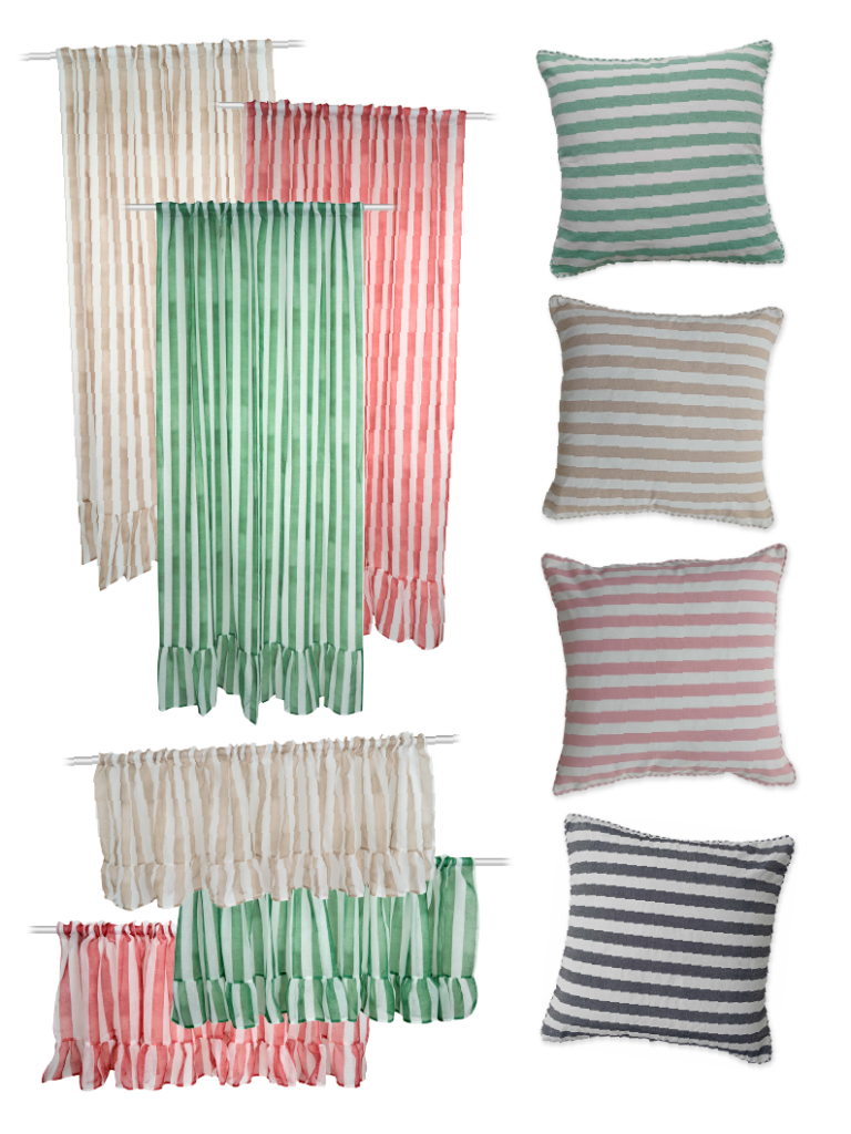 Kevään raikas rytmi hurmaa: Lines-verhojen ja Sona‑tyynyjen raikkaat raidat tuovat kotiin keveyttä, herkkyyttä ja keväistä harmoniaa.