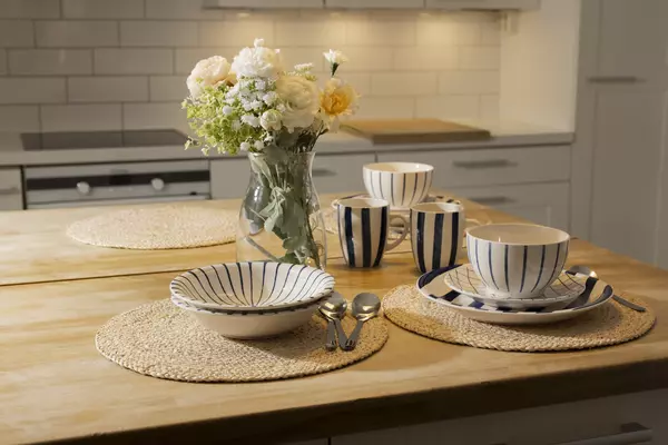 Sinisen ja valkoisen raikas yhdistelmä luo merihenkisen kattauksen.