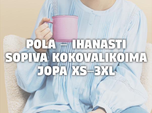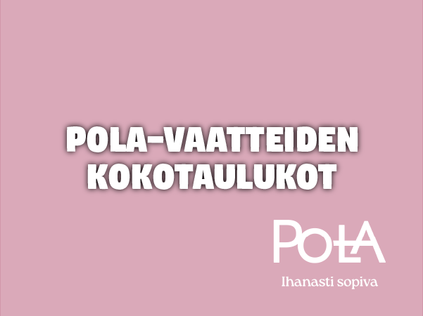 Uudistunut Pola on kotimainen vaatemerkki, joka juhlistaa upeutta kaikissa muodoissaan. Sisä-, alus- ja ulkopukeutumisen kattavasta valikoimasta on helppo koota asukokonaisuuksia arkeen ja juhlaan. Ihana tyyli kuuluu mielestämme kaikille. Raikkaissa mallistoissa on saatavilla vaatteita koosta XS kokoon 3XL. Vahvan kotimaisen suunnittelu- ja mitoitusosaamisen ansiosta Polan vaatteissa huomioidaan ulkonäön ja ajankohtaisuuden ohella käyttäjien toiveita. Pola on saatavilla Tokmannin myymälöistä ja verkkokaupasta – ei muualta. Löydä edullisia ja kestäviä luottovaatteita, joita voi käyttää hyvillä mielin yhä uudelleen!