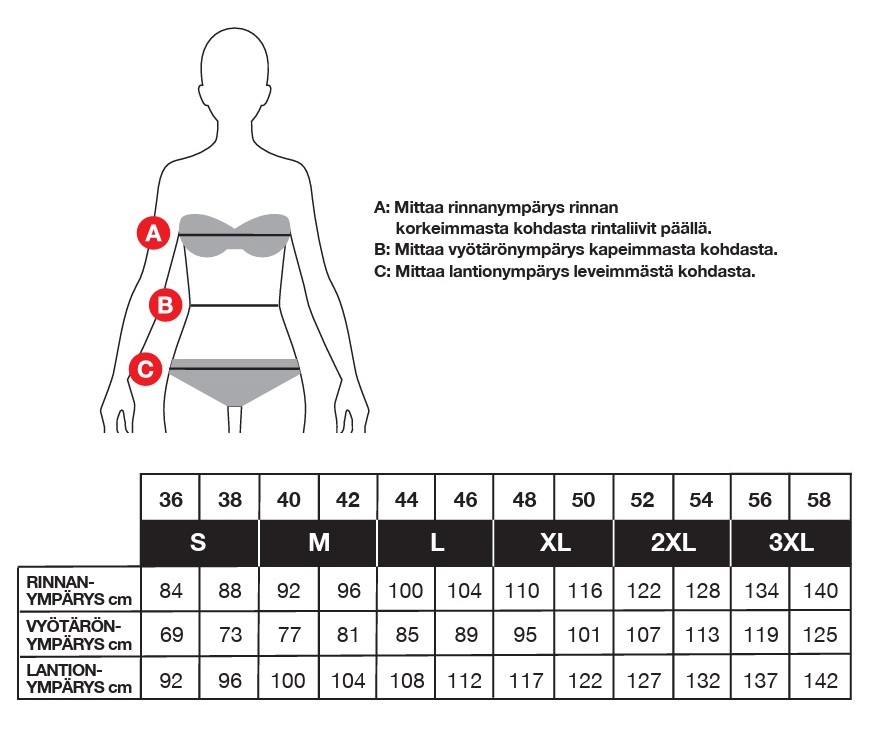 - Laaja kokovalikoima XS–3XL