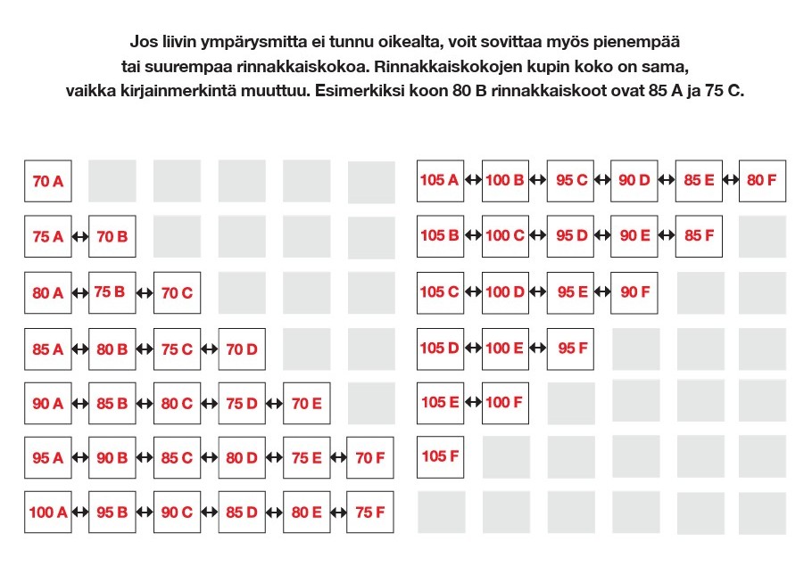 Pola-rintaliivien rinnakkaiskoot