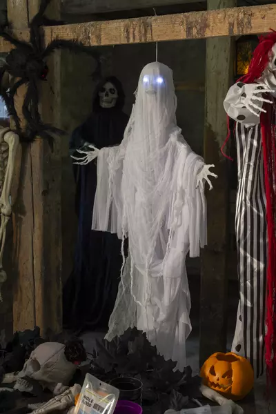 Voit myös koristella pihapensaita tai puita valkoisilla kummituslakanoilla ja pihavaloilla. Lisää niiden kaveriksi oksille ripustettavia lepakoita tai hämähäkkejä. Näillä koristeluideoilla luot oikean tunnelman jo ennen kuin vieraat astuvat sisälle.