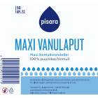 Tavallista suuremmat Maxi-vanulaput sopivat monenlaiseen puhdistukseen. Niissä on isokokoisempi pinta-ala, jolla saa hyvin puhdistettua laajatkin ihoalueet. Hellävaraisen pehmeät vanulaput on valmistettu 100 % puuvillasta. Pakkauskoko 50 kpl.