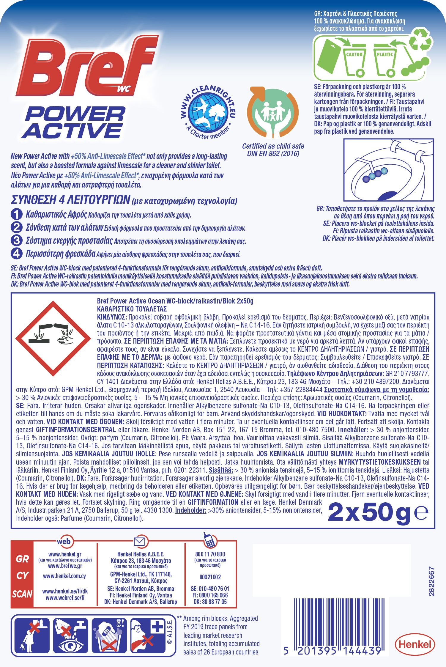 WC-raikastin Bref 2 x 50 g Power Active OceanDuo